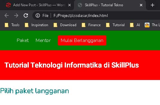 Sementara untuk file html, tambahkan class main-nav-item-button pada link Mulai Berlangganan.