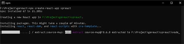 Pada command akan tampil proses instalasi library yang digunakan react, silakan tunggu hingga proses download dan instalasi selesai.