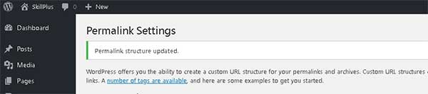 WordPress akan memberikan pesan bahwa permalink sudah diupdate.
