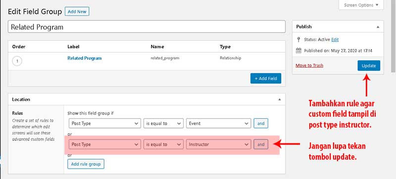 Ubah custom field related porgram untuk menghubungkan instructor dengan program studi.