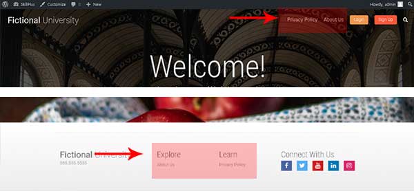 Buat juga 2 menu untuk footer menu, jangan lupa, untuk menampilkan footer menu, file yang harus diubah adalah footer.php.