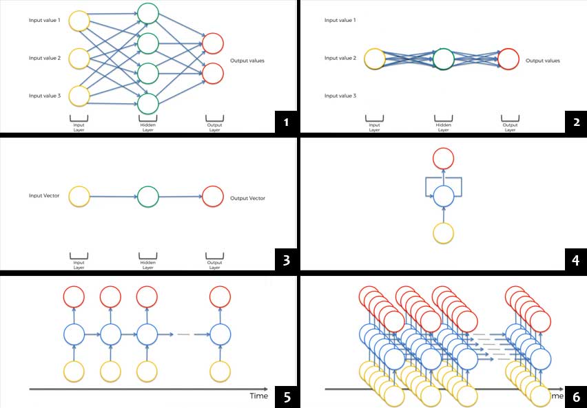 RNN secara sederhana adalah kumpulan artificial neural network (ANN) yang kembali terhubung dengan diri sendiri. Jika digambarkan, berikut step dari ANN hingga terbentuk menjadi RNN.