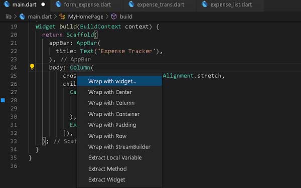 Salah satu kemudahan dari refactoring adalah membantu kita dalam Wrapping sebuah widget.