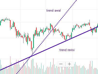Berikut contoh revisi trendline dibuat setelah titik panduan berikutnya terbentuk.